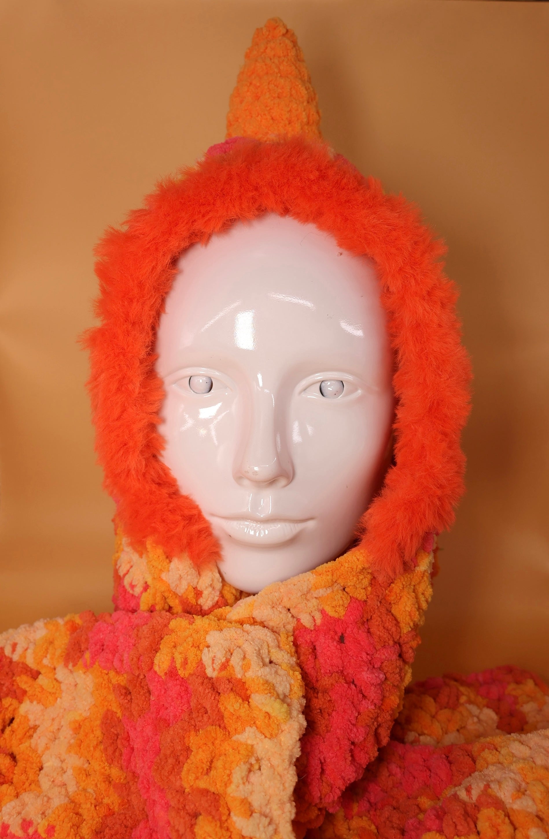 This cozy scarf hoodie is designed for ravers and festival lovers who want both style and warmth. The versatile design allows you to wear it wrapped around your neck, draped over your shoulders, or as a full hood. Also If your bunny ears feel a little stiff or out of place at first, thats totally normal! The fabric just needs a little time to relax. Pull them down and give them tug to shape them how you like, and over time, they will settle into place perfectly the perfect statement piece for chilly festival nights or everyday wear!